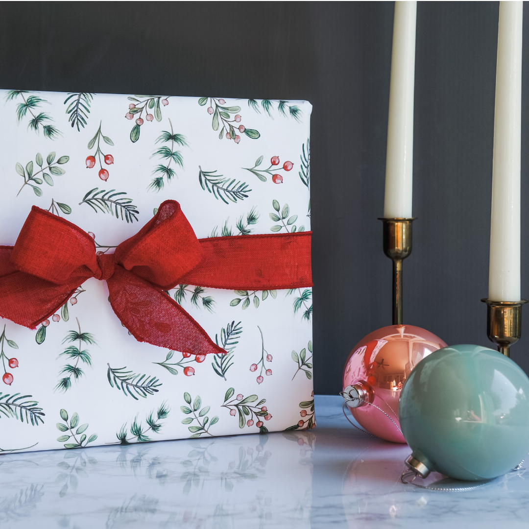 Make your gifts extra magical this season with our Holiday Foliage Wrapping Paper. Featuring charming hand-painted illustrations of pine and cedar sprigs, and red winter berries that capture the crisp foliage of the holidays. Perfect for wrapping Christmas presents, stocking stuffers, or holiday party favors, this cheerful paper adds a playful touch to every package.