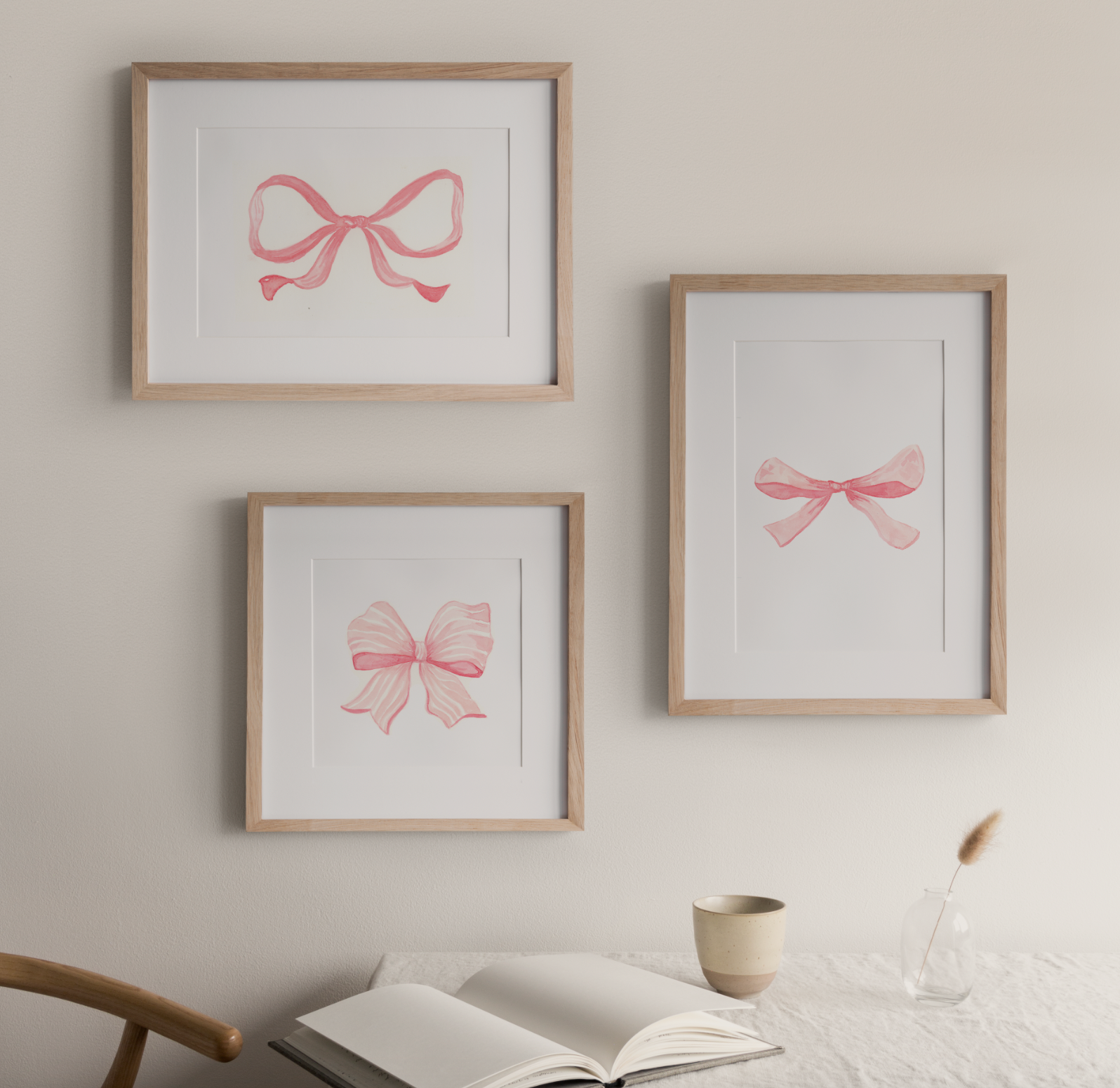 Add the finishing touch with our pretty Pink Bow Prints, subtle yet ideal for a baby girl's room. These charming decorations bring a hint of grace to any room. Enhance your little one's nursery with this one-of-a-kind, fancy touch.