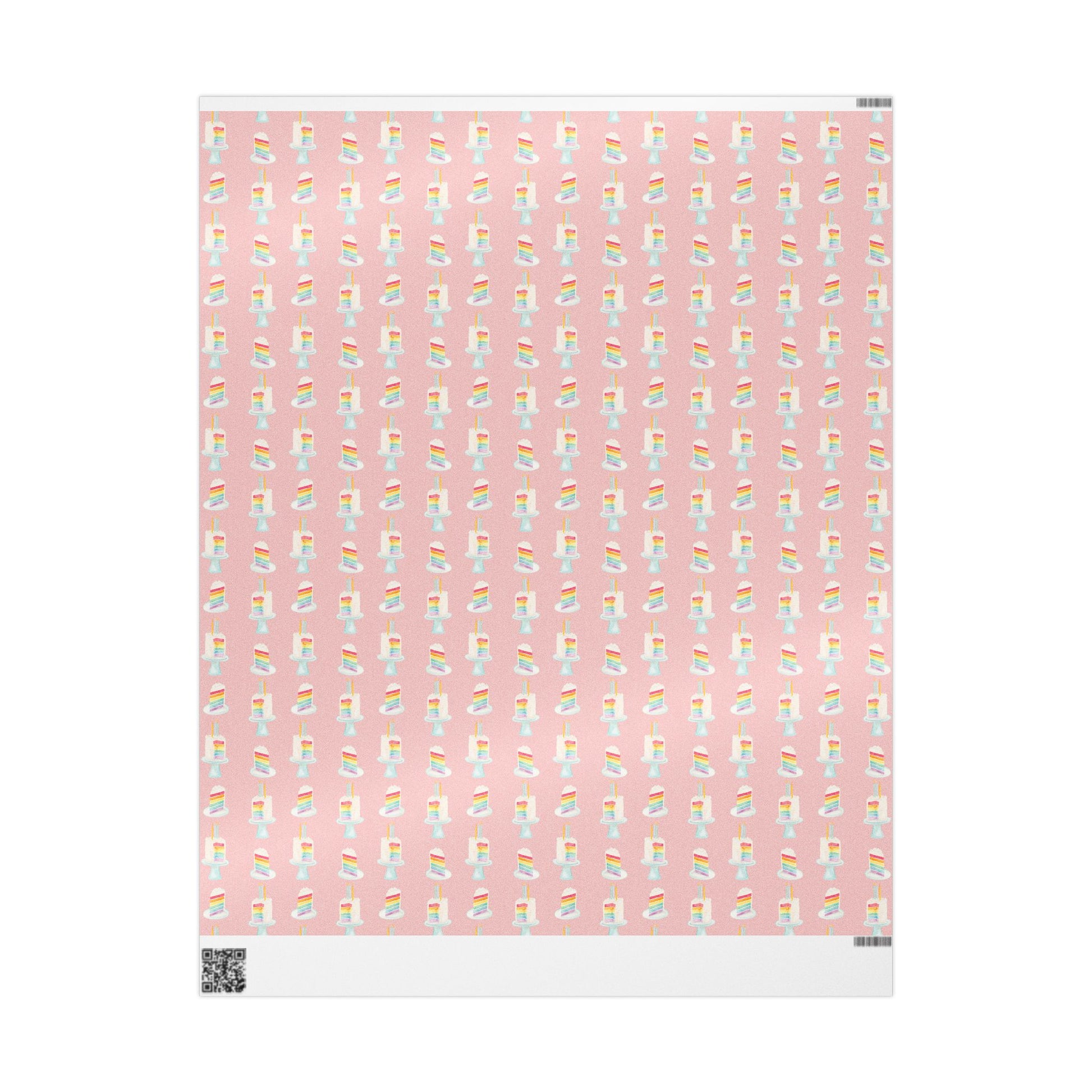 Rainbow Birthday Cake Wrapping Paper Roll - Pink